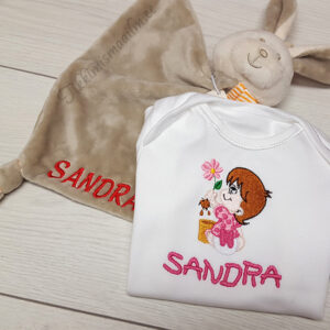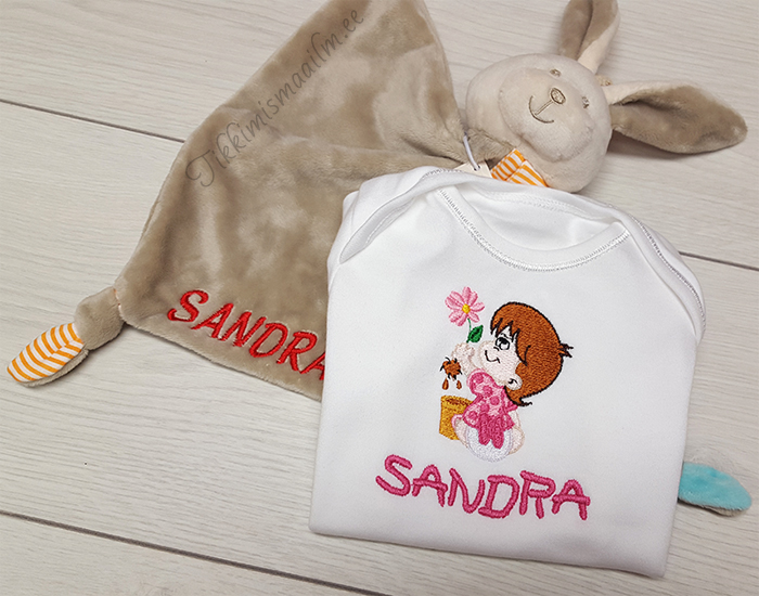 Telli beebi bodile nime ja beebi tikand. Bodi sobib hästi kingituseks.