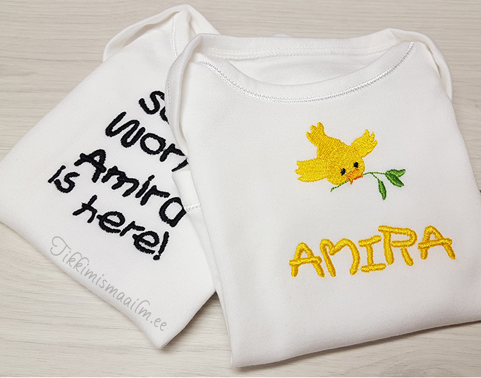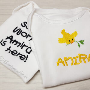 Telli beebi bodile nime tikand. Bodi sobib hästi kingituseks.