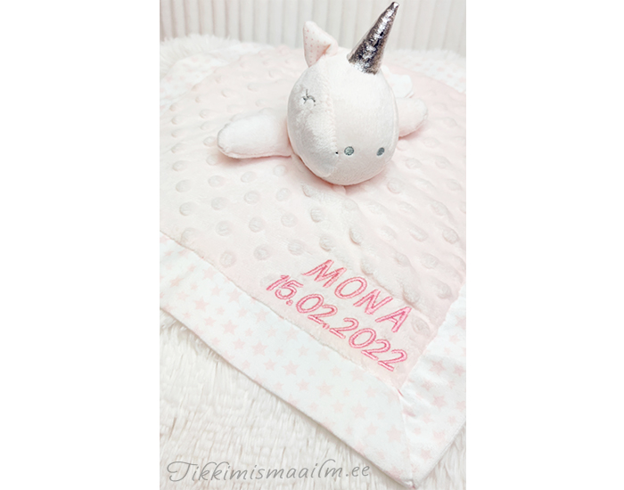 Telli armas beebi kaisukas. Kaisukale on võimalik tikkida beebi nimi või nimi koos sünniandmetega.
