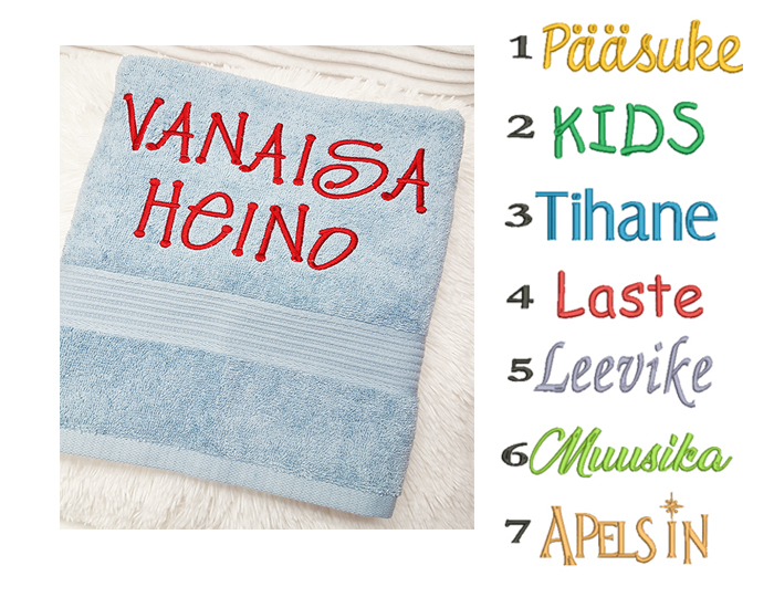 Telli nime tikand käterätikule 1-15 tähte, kirja kõrgus jääb 4-6 cm oleneb kirjastiilist.