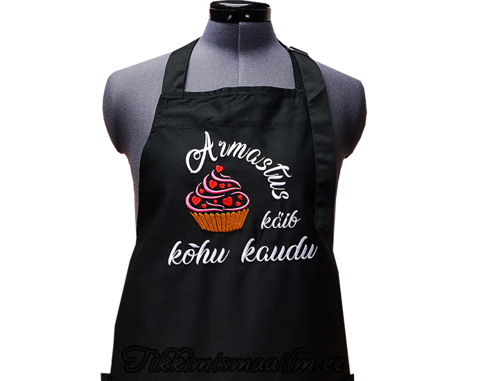 Telli kaunis kokapõll. Kokapõllel tikand “Armastus käib kõhu kaudu”.