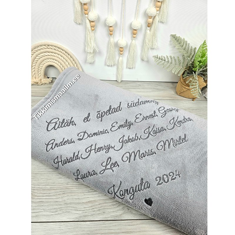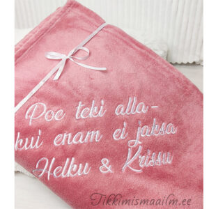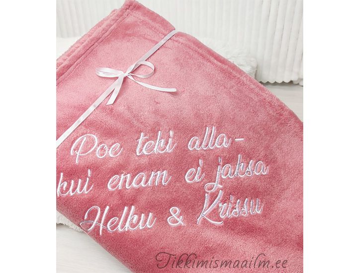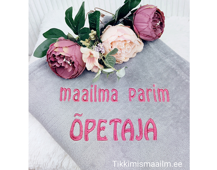 Telli pehmele pleedile tikand. Pleed sobib hästi kingituseks õpetajale, kasvatajale, kolleegile või mõne muu tähtpäeva puhul.
