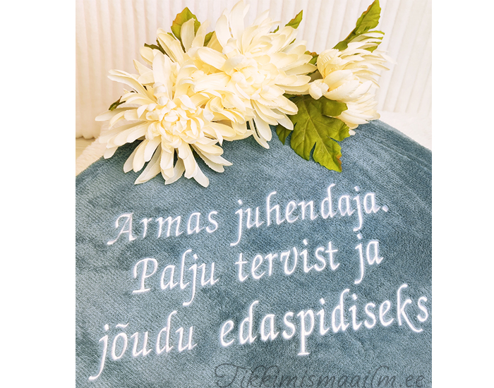 Telli pehmele pleedile tikand. Pleed sobib hästi kingituseks õpetajale, kasvatajale, kolleegile või mõne muu tähtpäeva puhul.