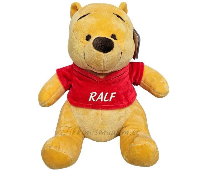 Telli armas Karupoeg Puhh. Karu pluusile saab tikkida lapse nime. Puhhi käppa vajutades teeb mänguasi heli. Puhhi suurus istudes 28 cm.
