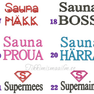 Telli vahva tikitud disainiga saunamüts endale või kingituseks. Saunamüts kaitseb juukseid ja peanahka kuumuse eest. Kuumana õue joostes külma eest.